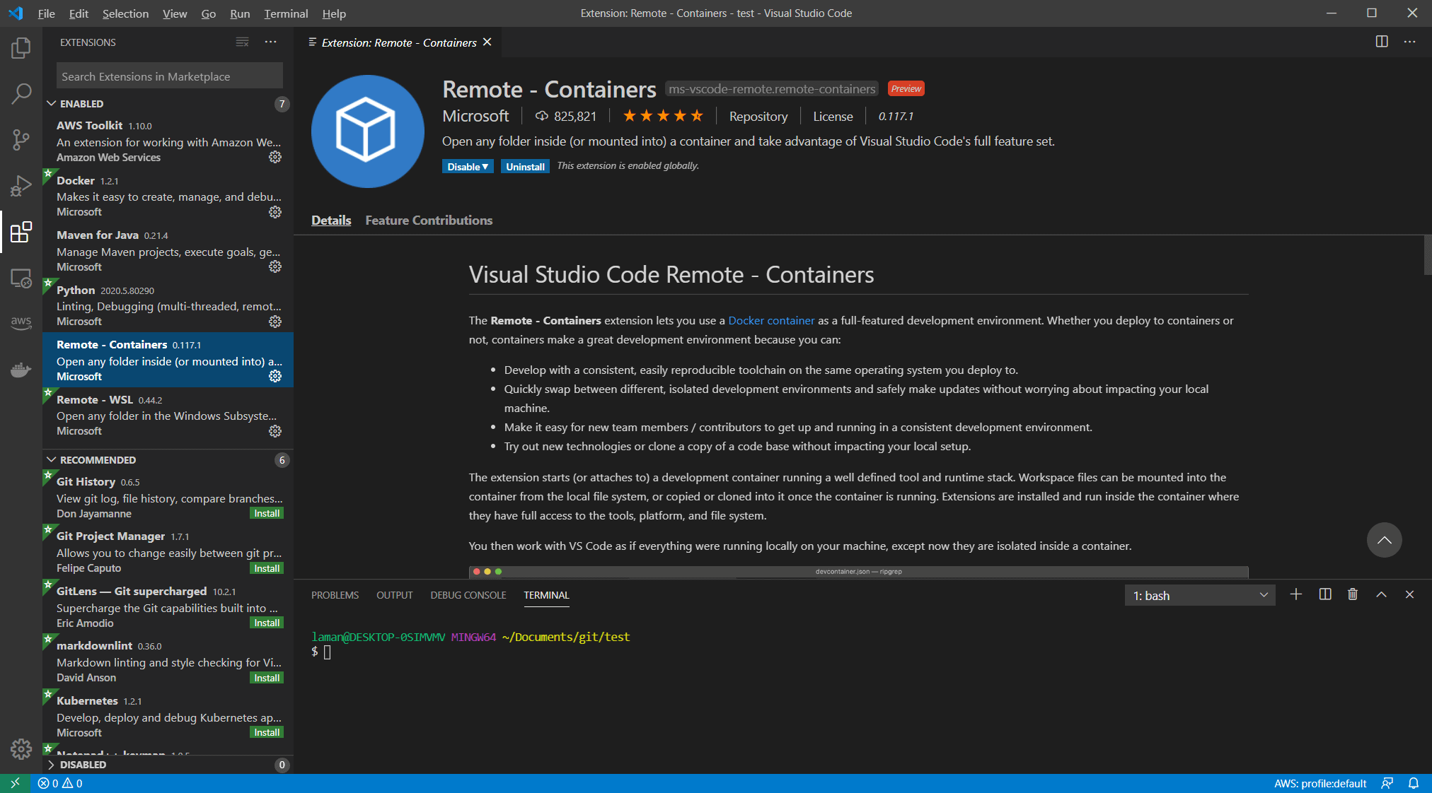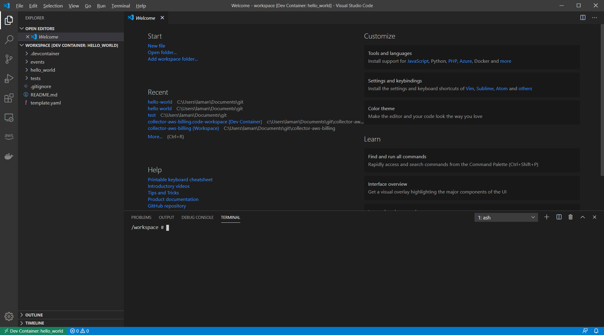 이렇게 VS Code를 이용하여 AWS SAM에 대한 Remote 컨테이너 개발 환경을 구축 완료하였습니다. 이제 Git 소스에 .devcontainer를 포함하여 배포하고, 다른 개발자는 VS Code의 명령 화면에서 간단하게 Remote-Containers: Open Repository in Container를 통해서 별도의 사전 설치를 최소화하고 동일한 개발 환경을 공유할 수 있게 되었습니다.