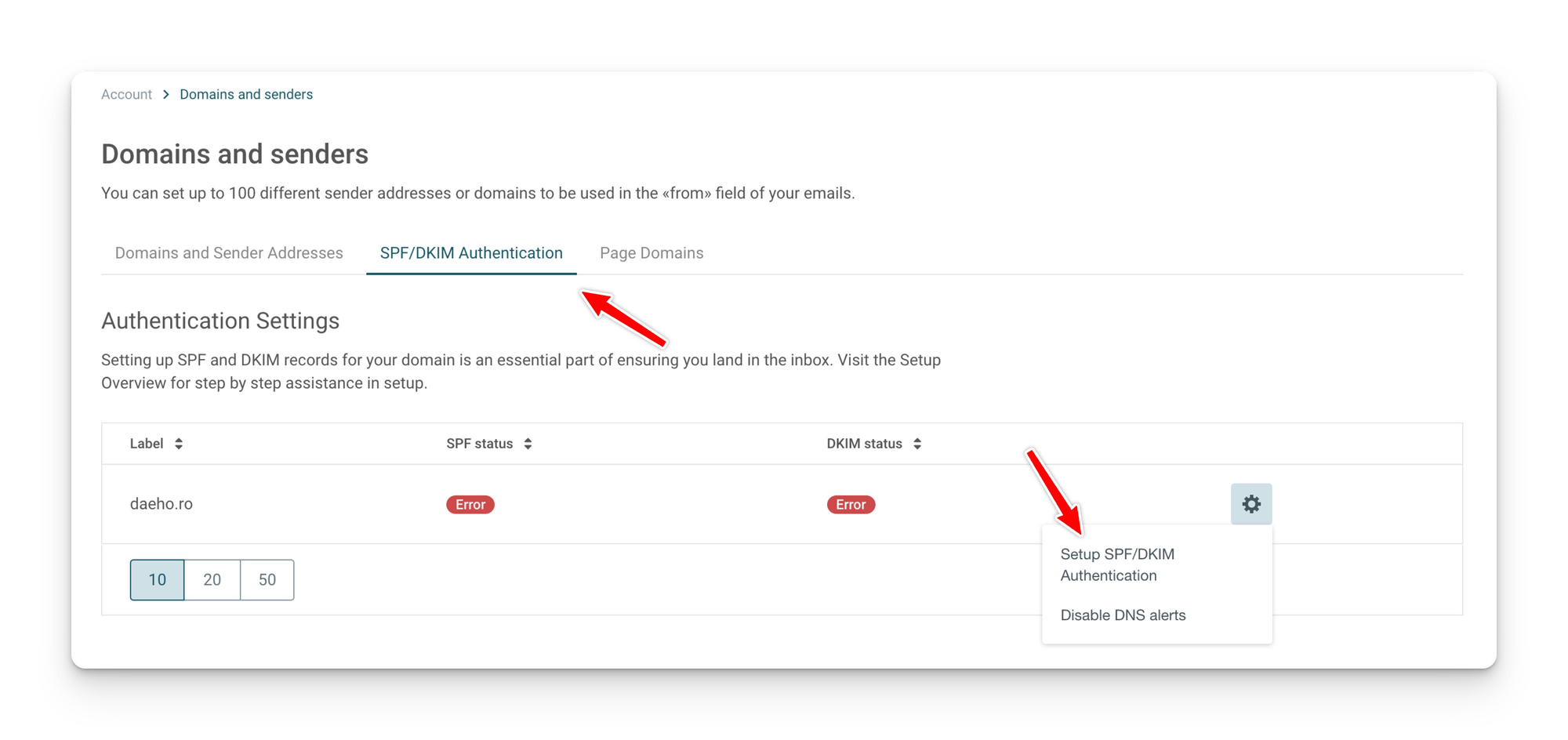 이제 이메일 발송을 위해서는 몇 가지 DNS 설정이 필요하다. 상단의 SPF/DKIM Authentication 메뉴에서 설정 메뉴로 진입한다.