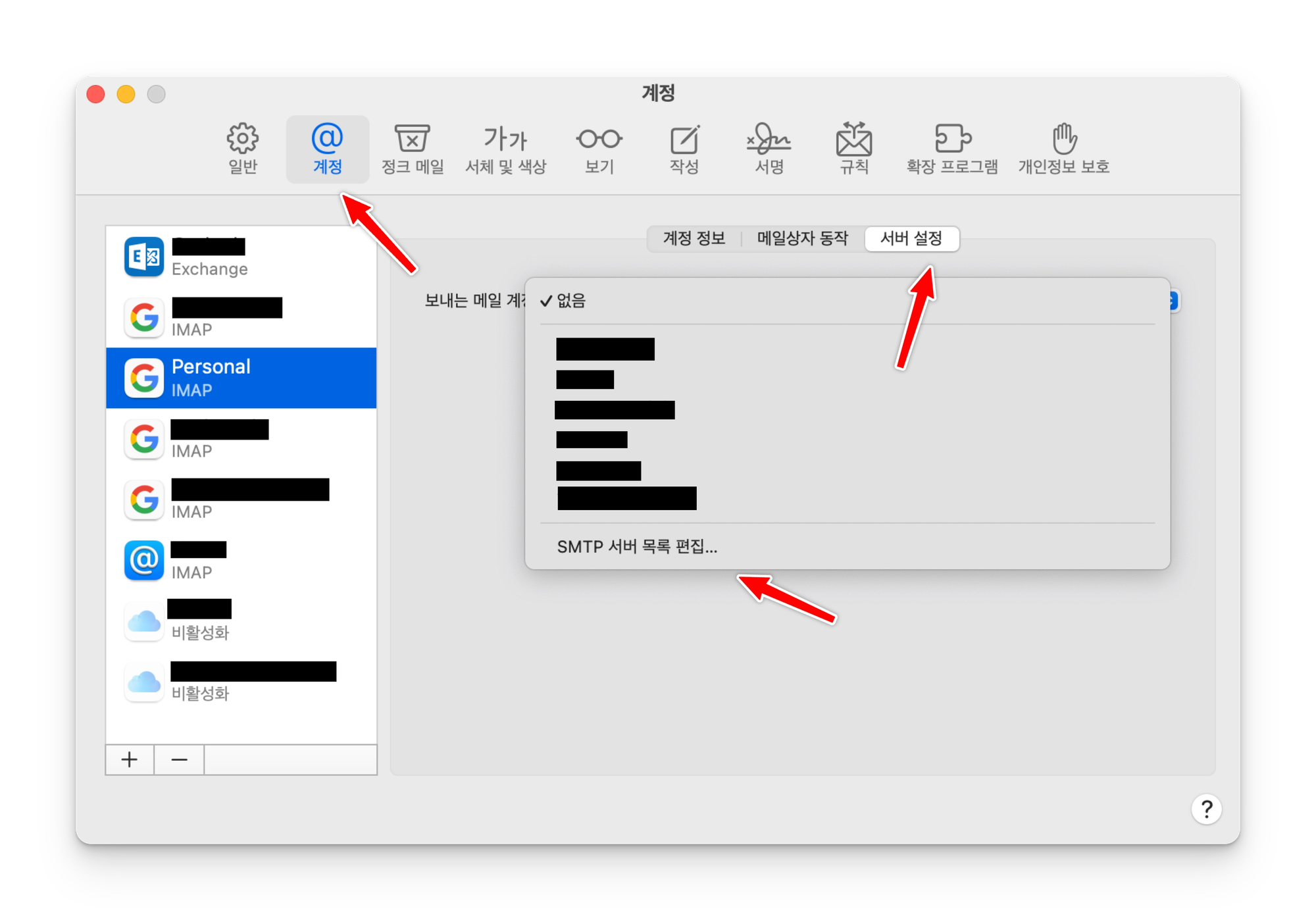 SMTP 설정 (Apple Mail)