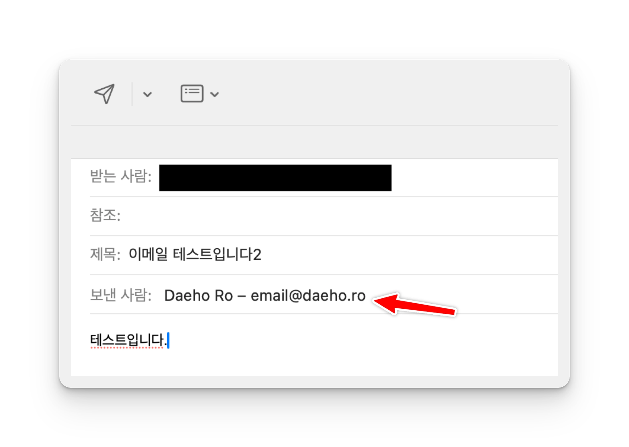 이제 메일 앱에서도 발송 준비가 완료되었다. 새로운 이메일을 발송해보자.