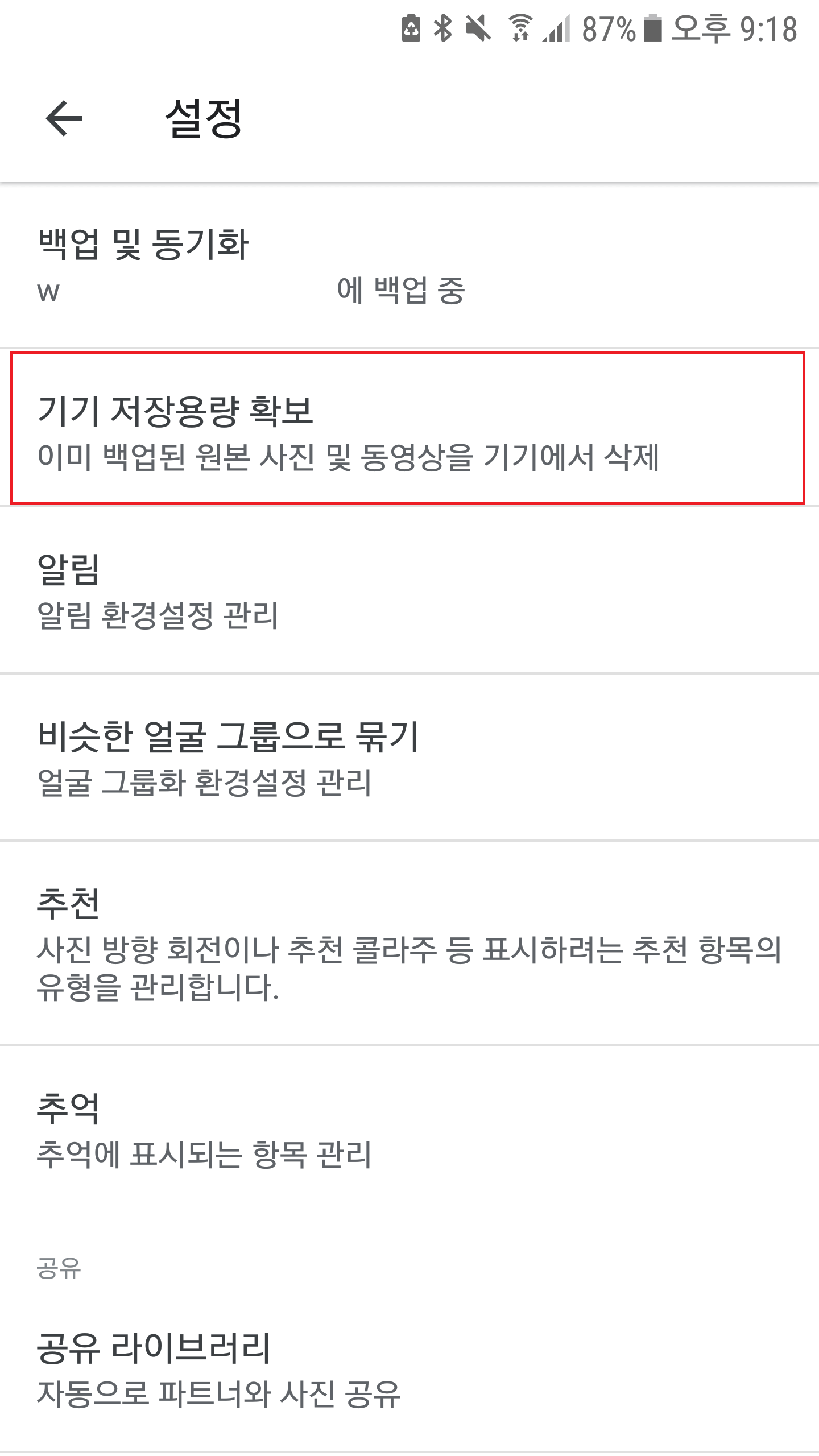 백업이 된 사진만 기기에서 안전하게 삭제하려면 [라이브러리 > 관리 기능 > 여유 공간 확보] 기능 또는 [포토 설정 > 기기 저장용량 확보] 기능을 이용할 수 있습니다. 이 기능을 이용하면 정확하게 백업된 사진은 구글 포토에 남겨놓고, 기기에서만 사진을 삭제하게 됩니다.