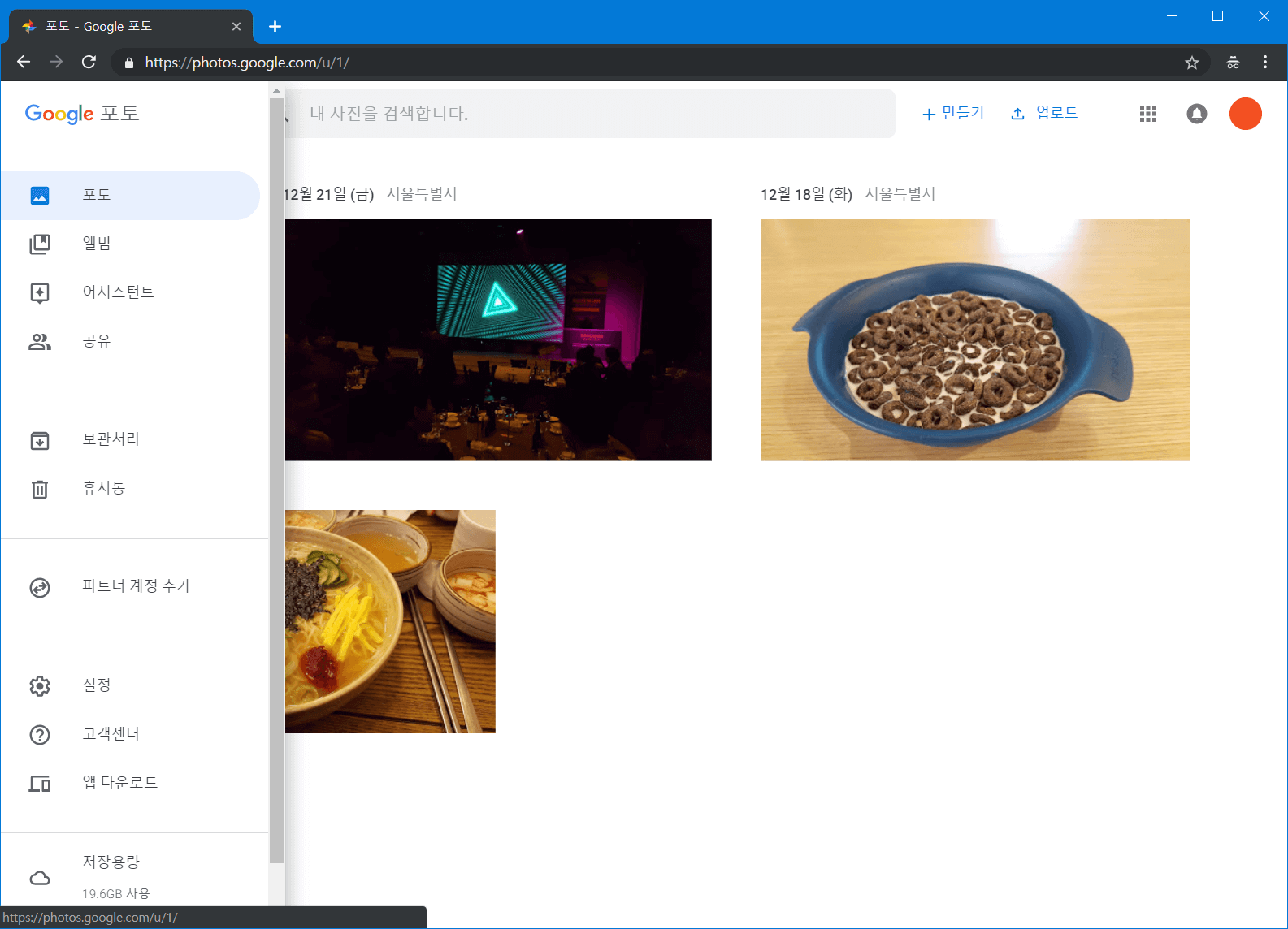 구글 포토의 좌측 메뉴에서 [파트너 계정 추가]를 찾습니다.