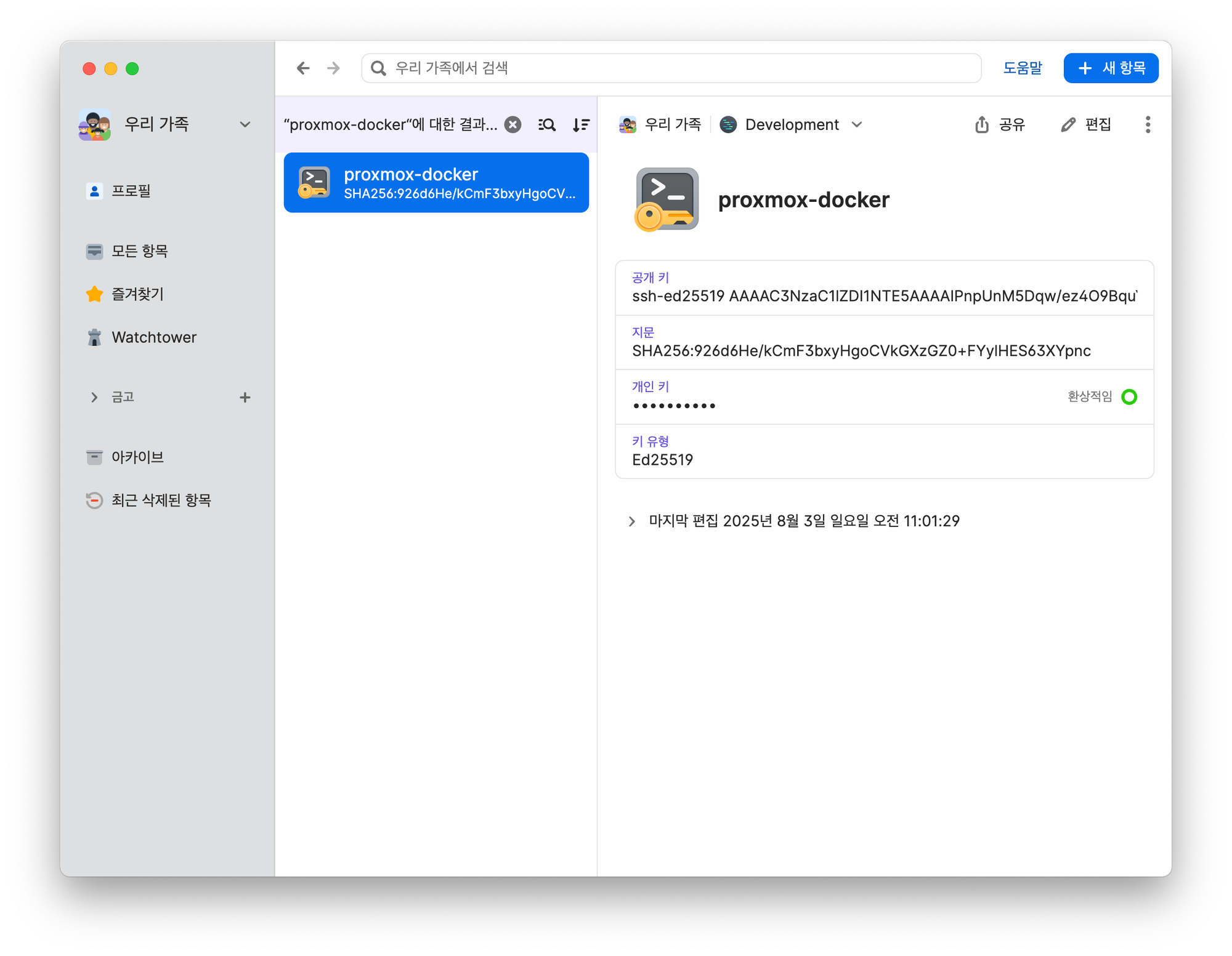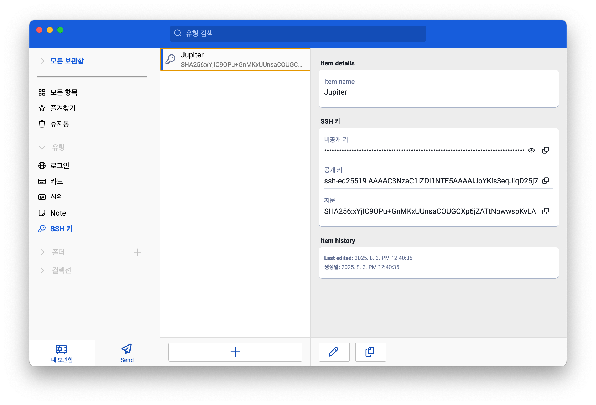 그리고 1Password에서 사용할 SSH 비밀키를 등록한다.