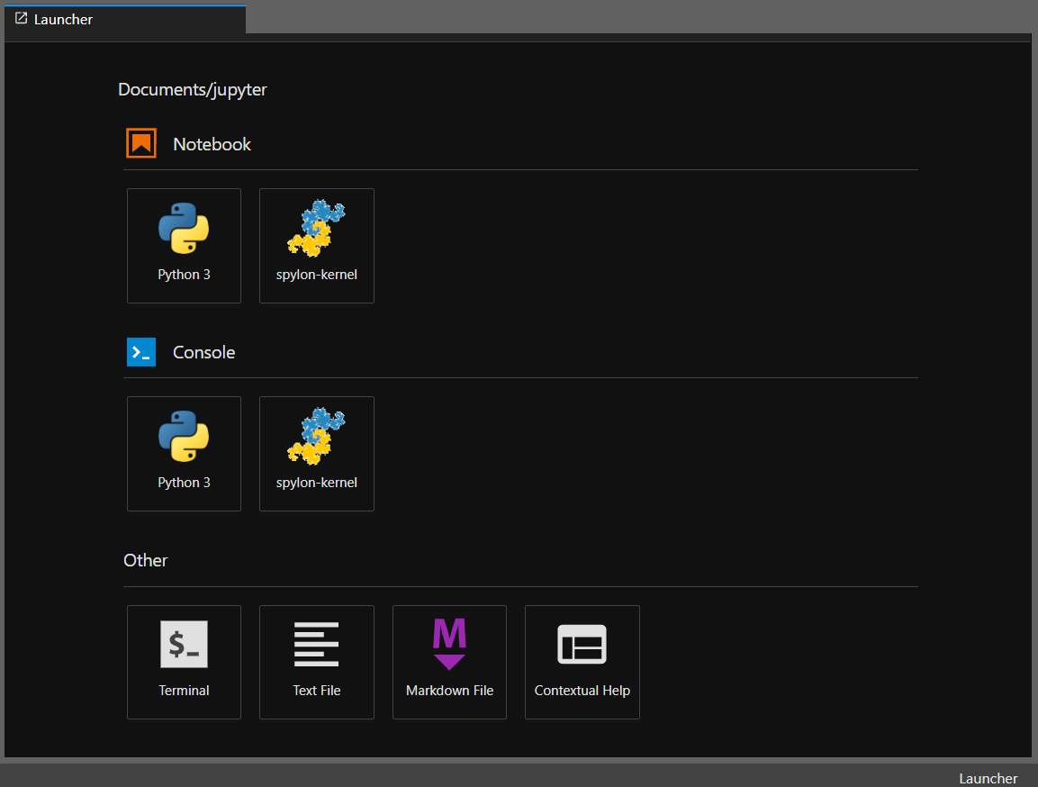 python -m spylon_kernel install설치가 완료된 다음에 Jupyter Lab을 새로고침하면 메인 화면에 스파크 커널이 추가된 것을 확인할 수 있습니다.