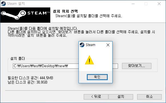 - 이것은 스팀을 설치하려는 폴더가 비어있지 않다는 뜻입니다.